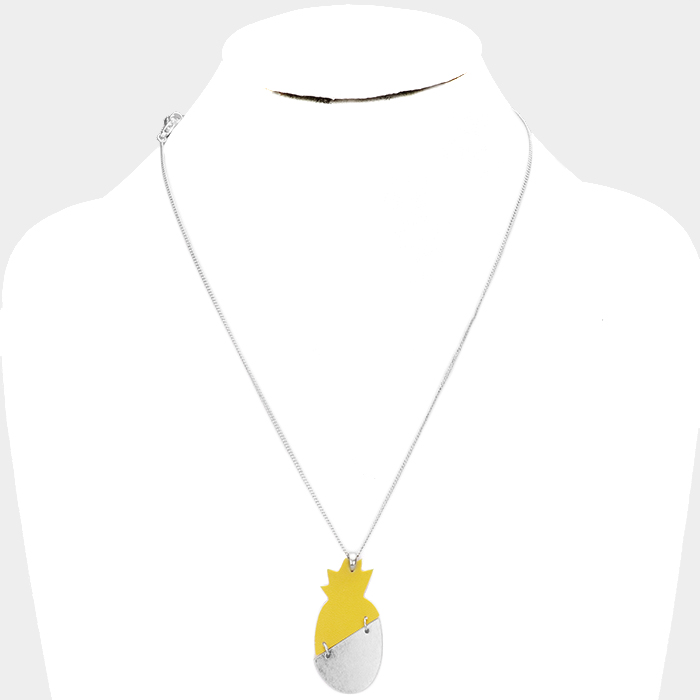 Pine Apple Faux Leather Metal Long Necklace