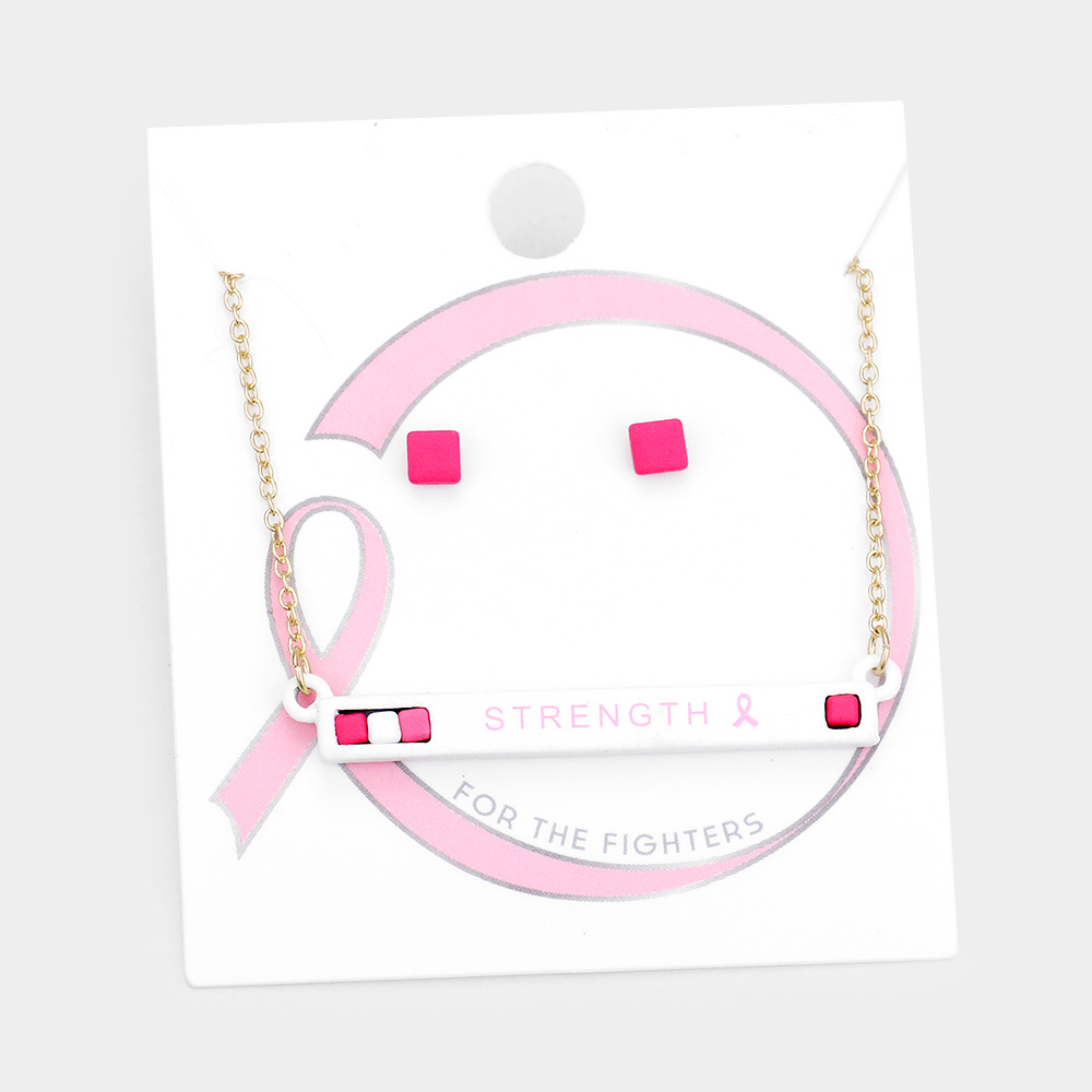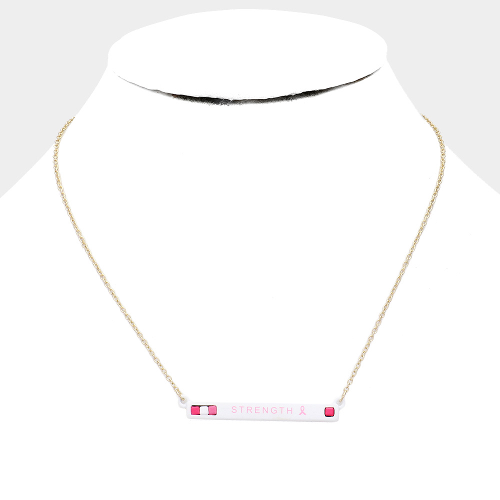 Pink Ribbon Strength Cube Resin Pendant Necklace