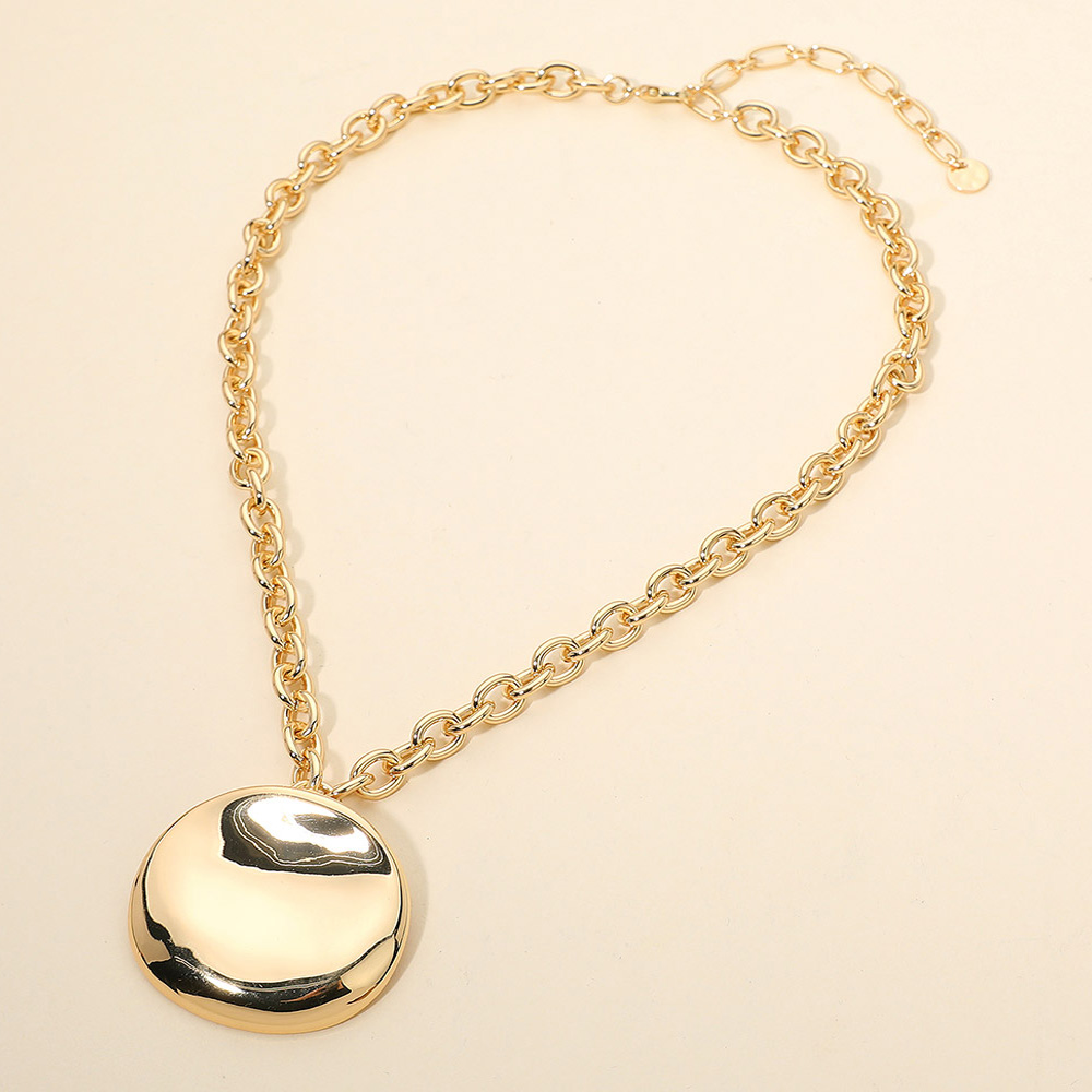 Polished Metal Organic Round Pendant Chunky Chain Necklace