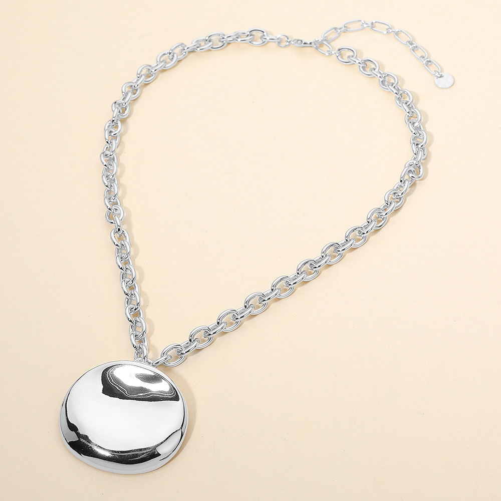 Polished Metal Organic Round Pendant Chunky Chain Necklace Polished Metal Organic Round Pendant Chunky Chain Necklace Polished Metal Organic Round Pendant Chunky Chain Necklace