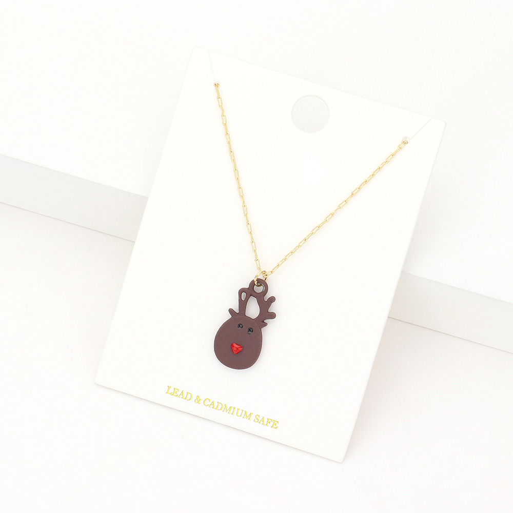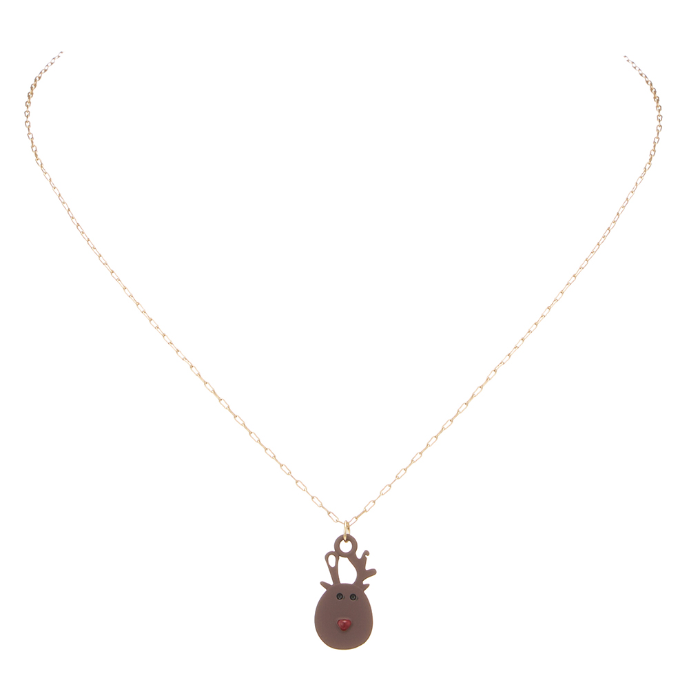 Polymer Clay Reindeer Rudolph Pendant Necklace