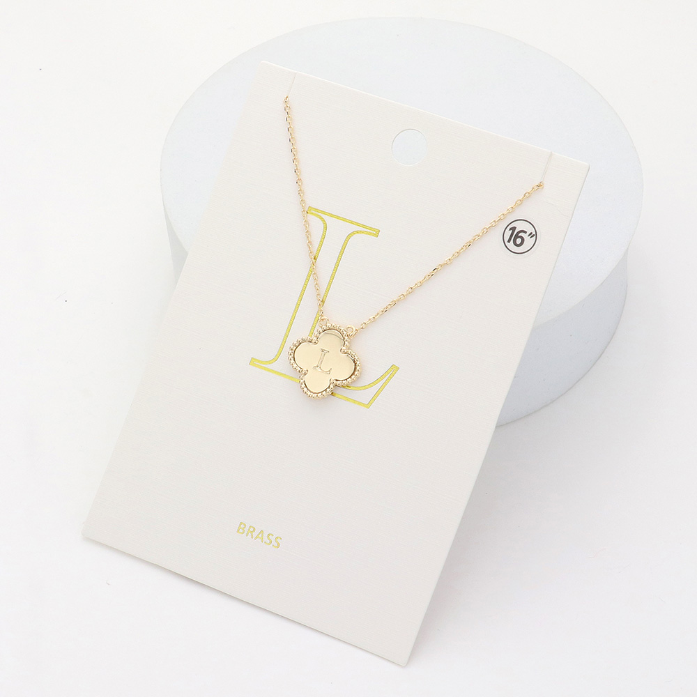 -R- Initial Monogram Brass Metal Pendant Necklace