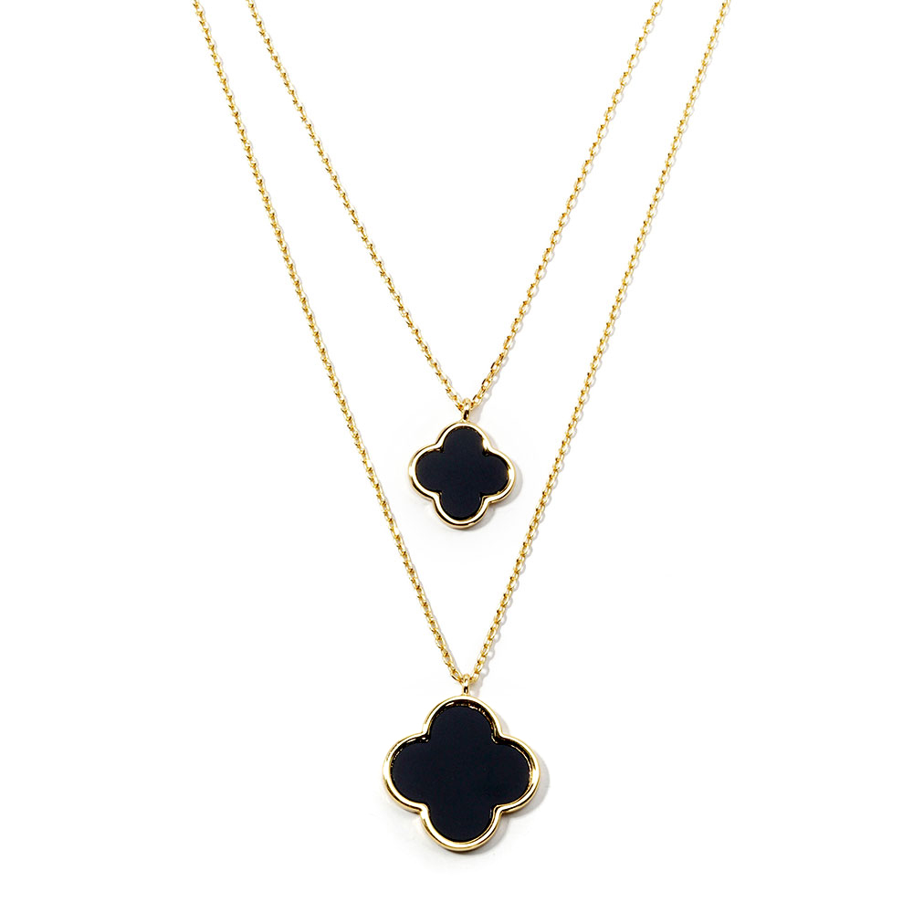 Mother of Pearl Quatrefoil Pendant Double Layered Necklace