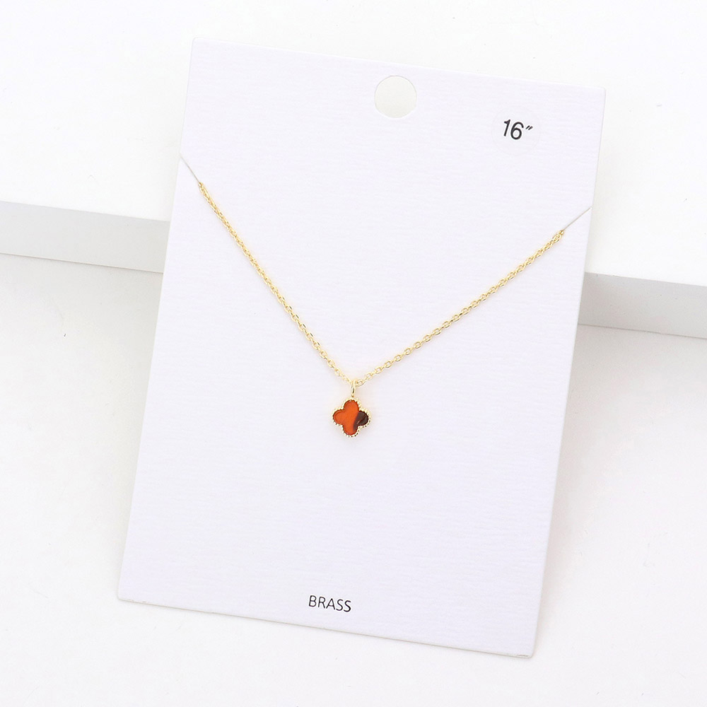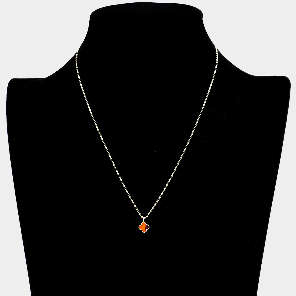 Enamel Rhinestone Embellished Quatrefoil Pendant Triple Layered Necklace