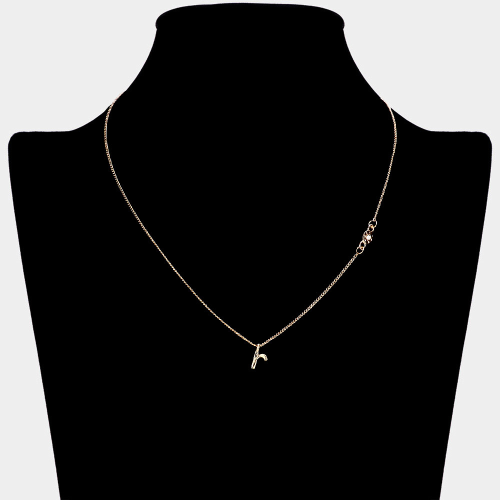 R - Small Letter Initial Monogram Pendant Necklace with Crystal