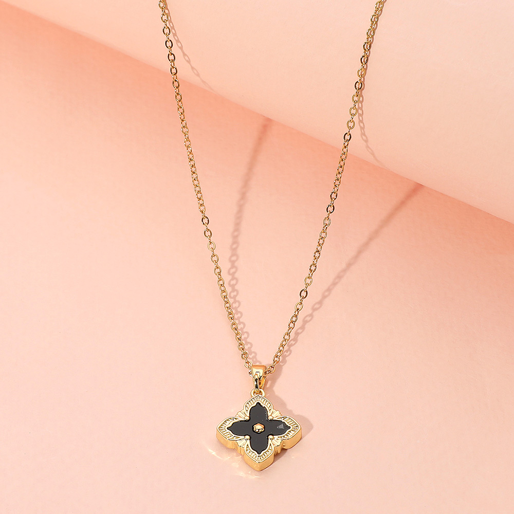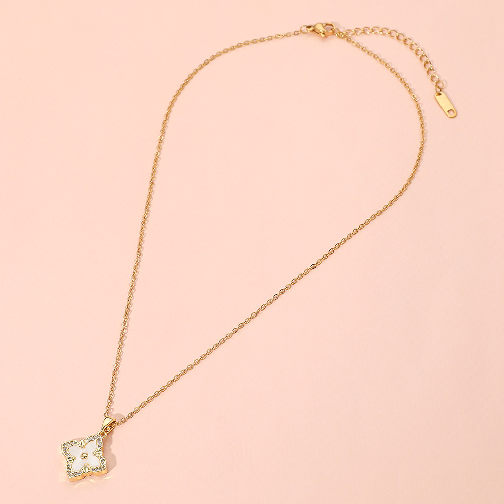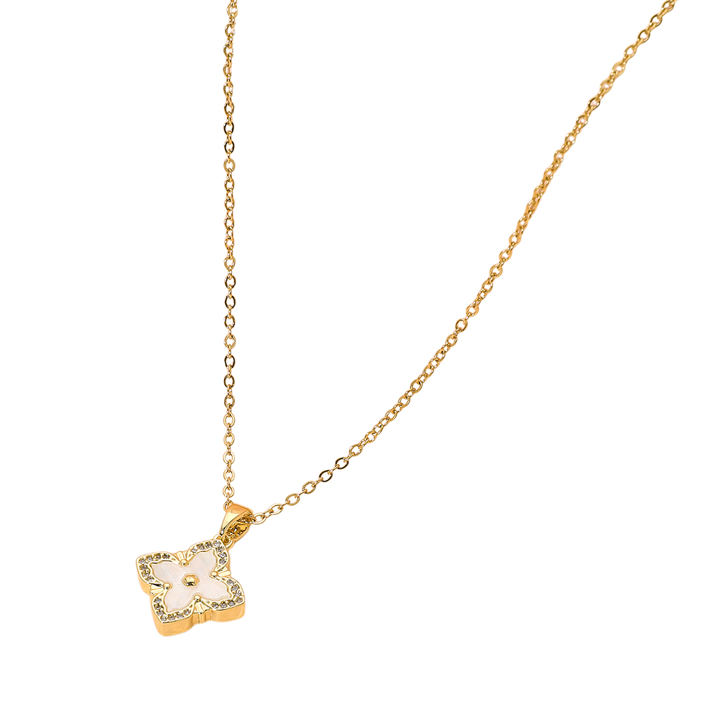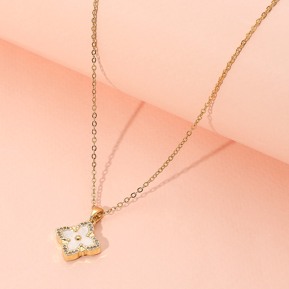 Reversible Stainless Steel Mother of Pearl Clover Pendant Necklace