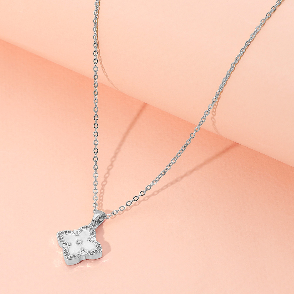 CZ Marquise Stone Embellished Spinning Clover Pendant Necklace