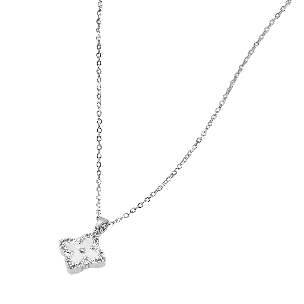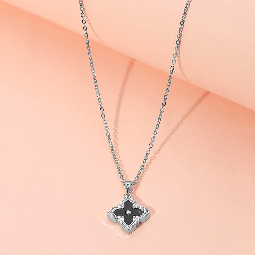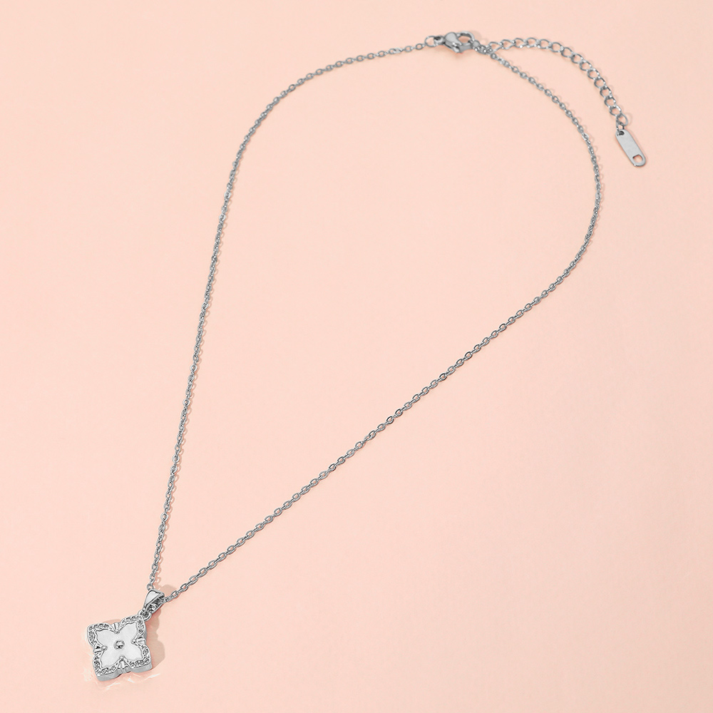 Reversible Stainless Steel Mother of Pearl Clover Pendant Necklace