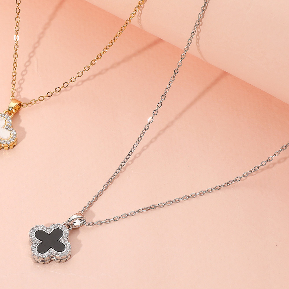 Reversible Stainless Steel Quatrefoil Pendant Necklace