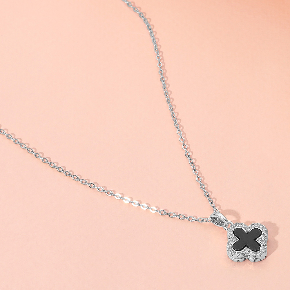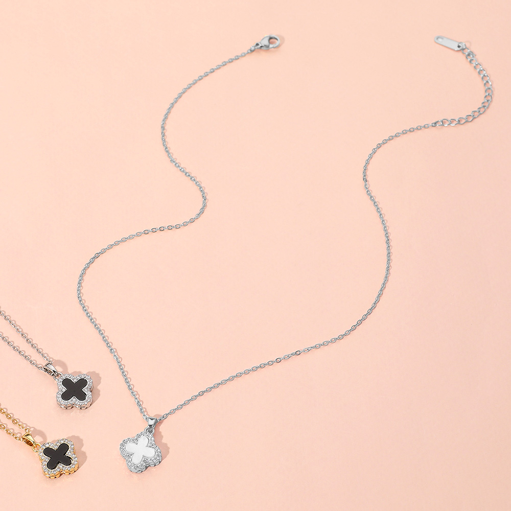 Reversible Stainless Steel Quatrefoil Pendant Necklace