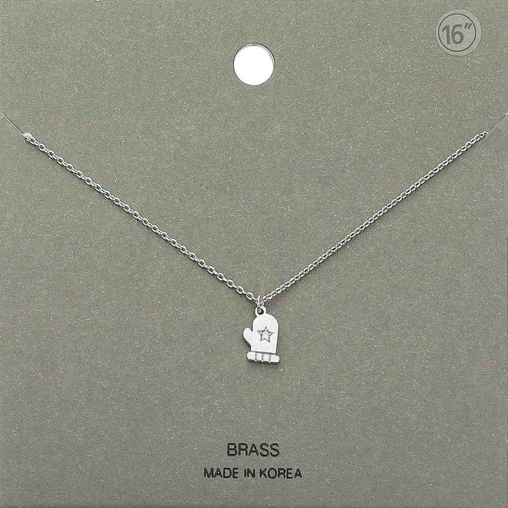 Details • Necklace Size : 16" + 3" L • Pendant Size : 0.25" X 0.3" • This charming necklace features a delicate mitten-shaped pendant accented with a subtle star detail. A playful yet minimalist design that adds a cozy, whimsical touch to any outfit. Perfect for gifting or layering with your favorite pieces. • Lead and Nickel Compliant