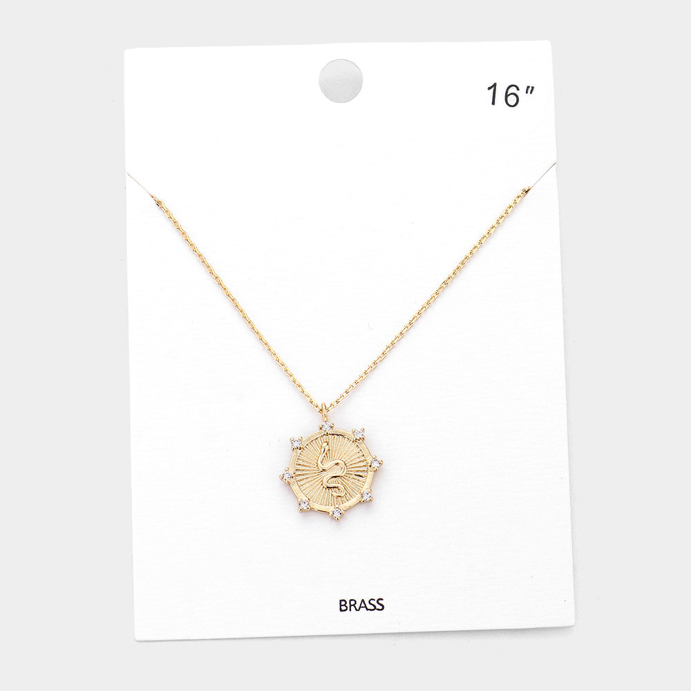 Rhinestone Embellished Brass Metal Snake Pendant Necklace