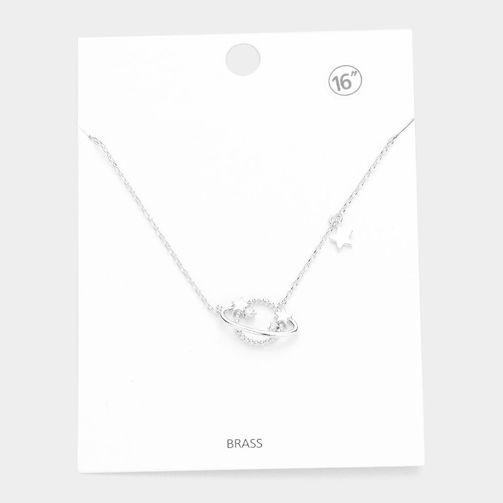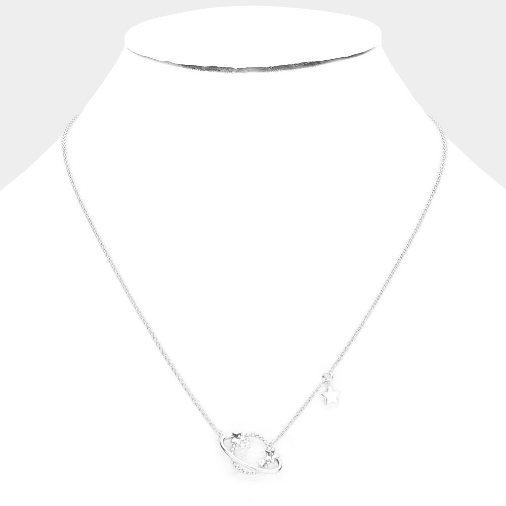 Rhinestone Embellished Brass Metal Space Star Pendant Necklace