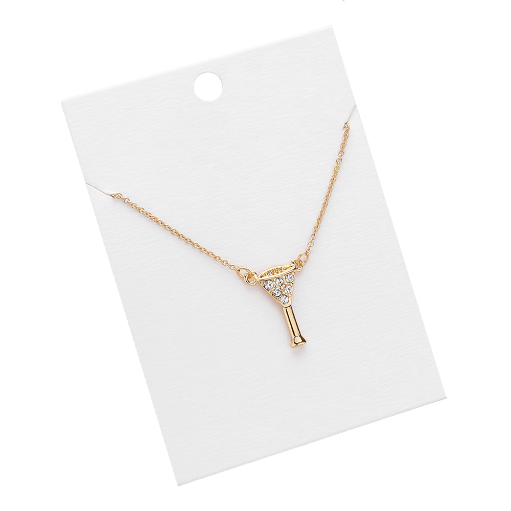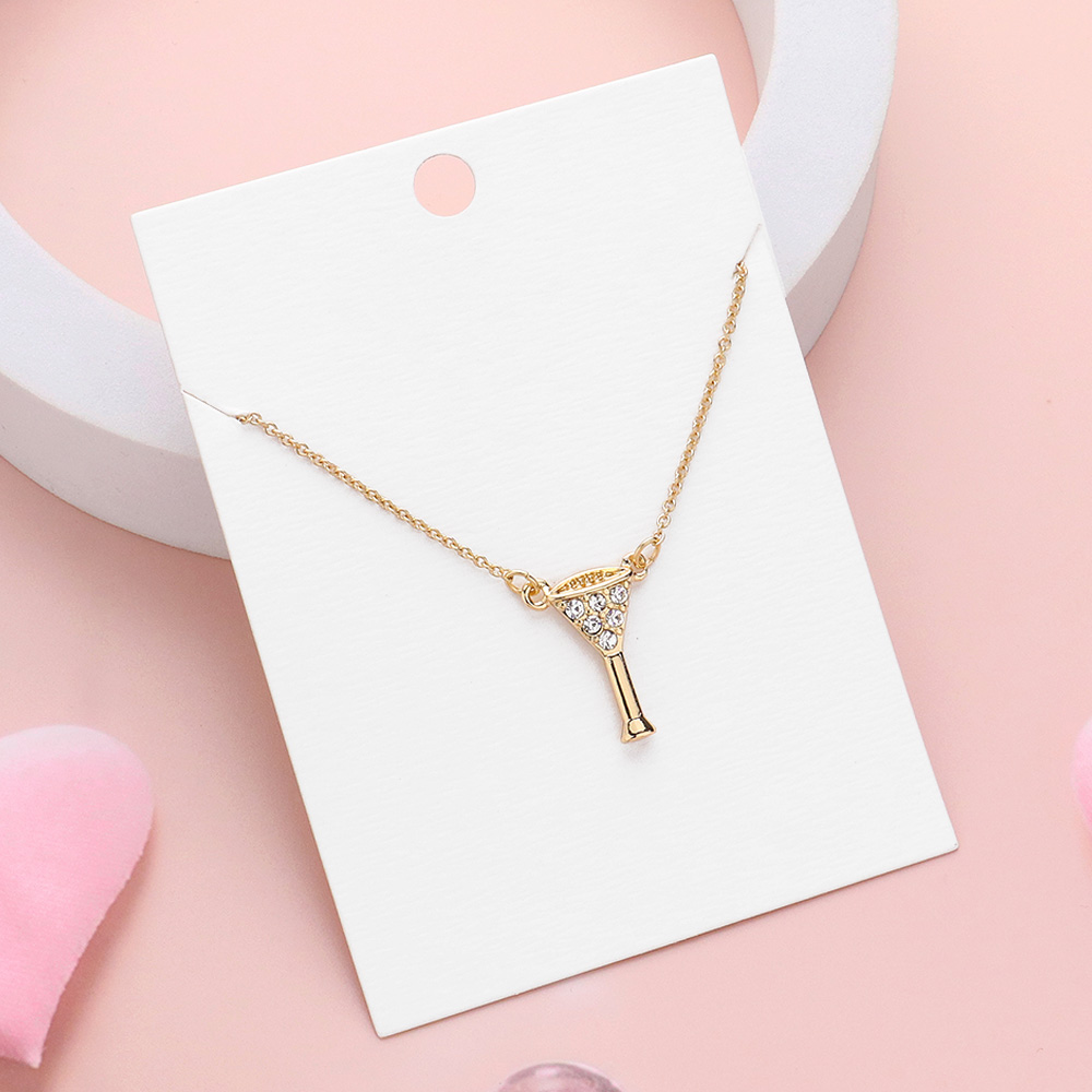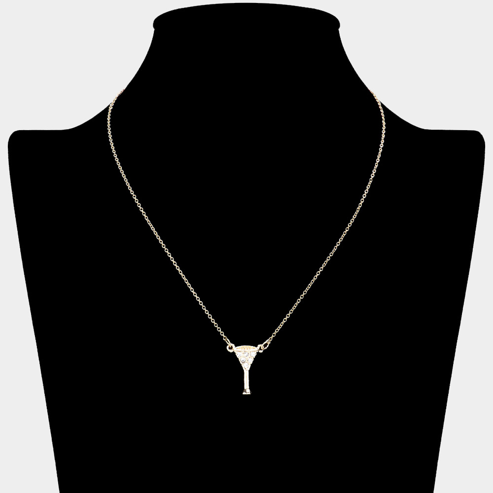 • Fun and flirty necklace featuring a martini glass pendant accented with sparkling stones. Hung on a delicate chain, it adds a touch of playful elegance to any look. Perfect for parties, casual outfits, or as a unique gift for someone who loves bold and quirky accessories.