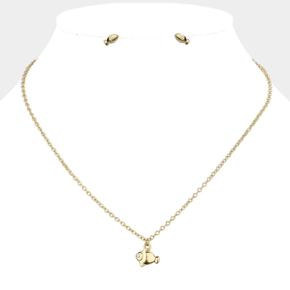 Silver Dipped CZ Stone Paved Whale Pendant Necklace