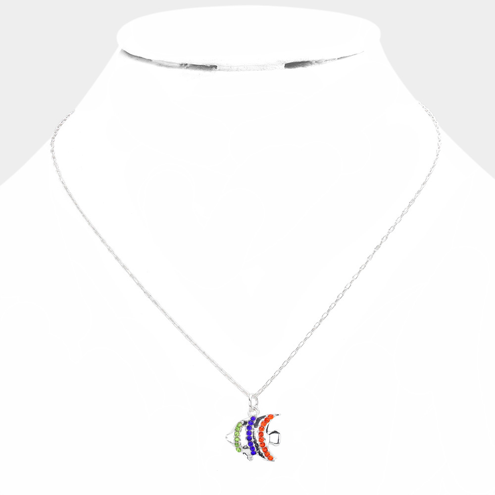 Rhinestone Embellished Fish Pendant Necklace