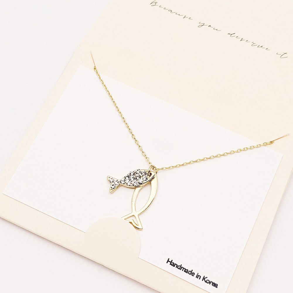 Rhinestone Embellished Ichthys Pendant Necklace