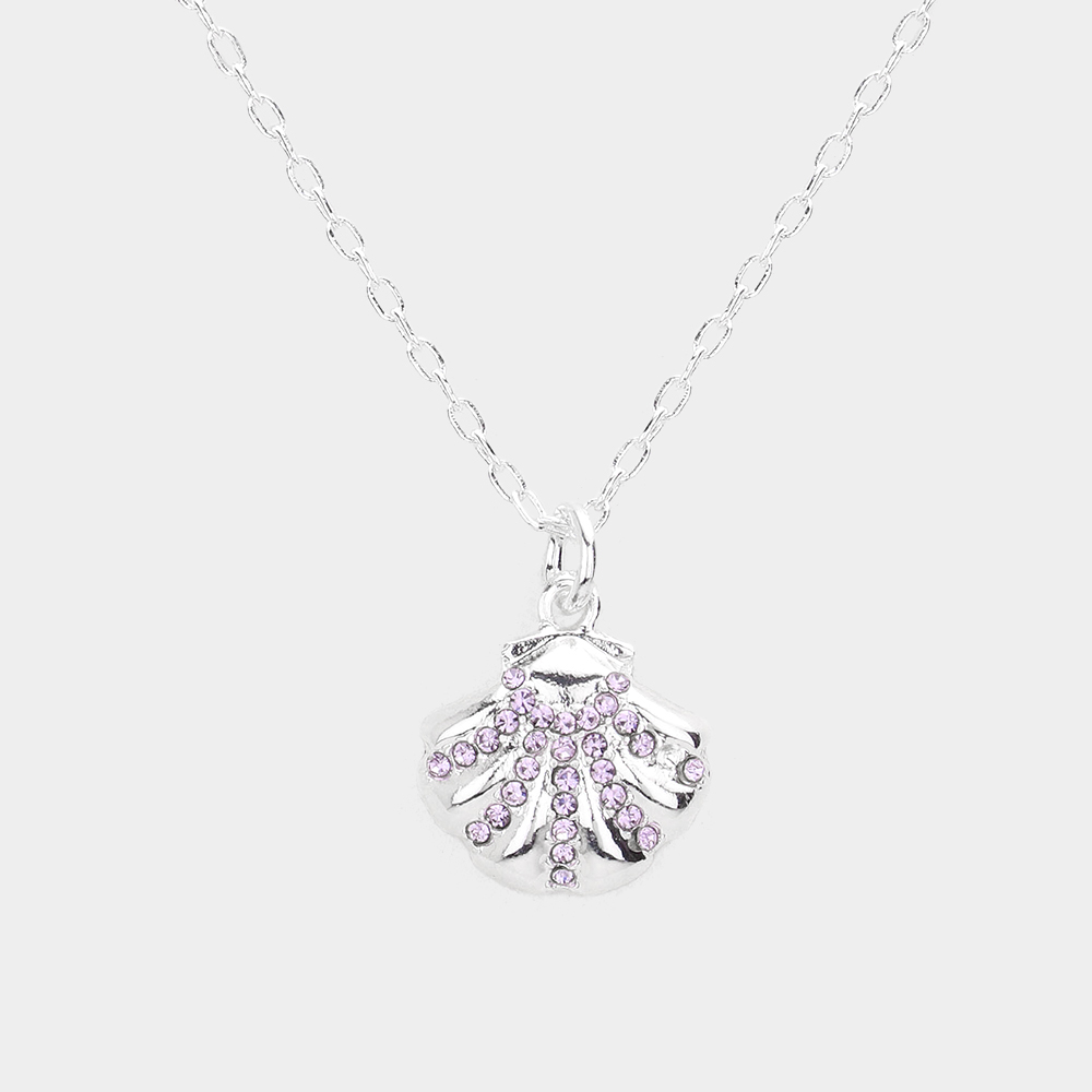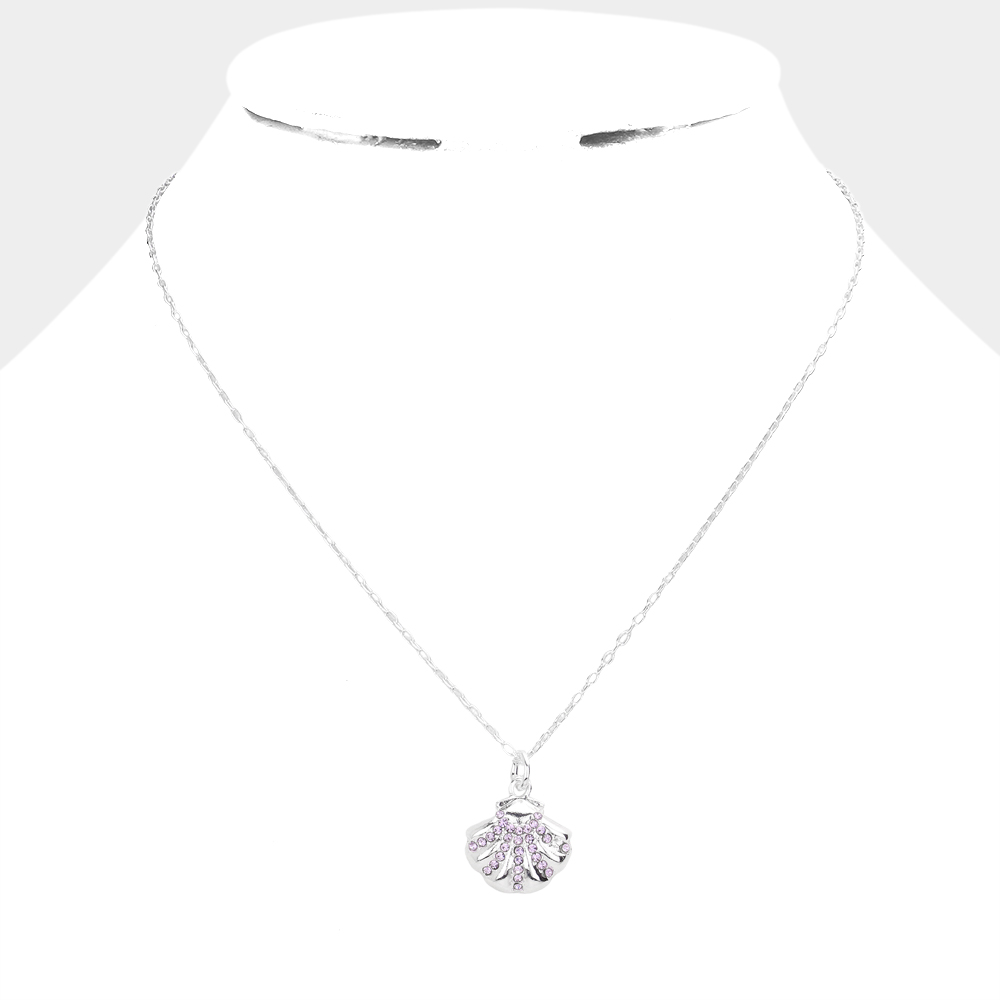 Rhinestone Embellished Metal Shell Pendant Necklace