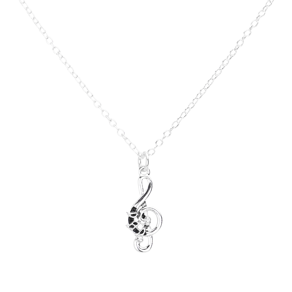 Rhinestone Embellished Metal Treble Clef Pendant Necklace
