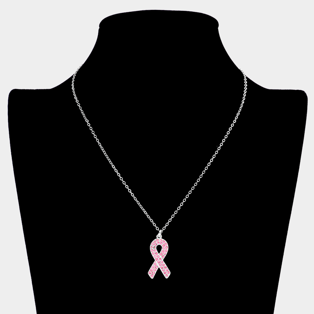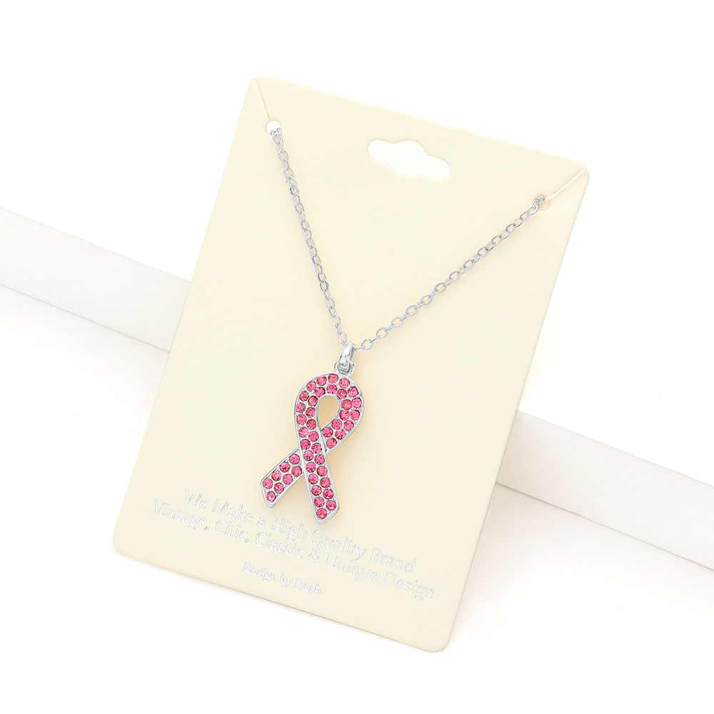 Details • Necklace Size : 15.5" + 3" L • Pendant Size : 0.5" X 1.2" • Shine a light of hope with this awareness ribbon pendant necklace adorned with radiant rhinestones. A symbolic jewelry piece designed to inspire, raise awareness, and show support, making it a meaningful accessory for everyday wear or as a thoughtful gift for loved ones. • Lead and Nickel Compliant