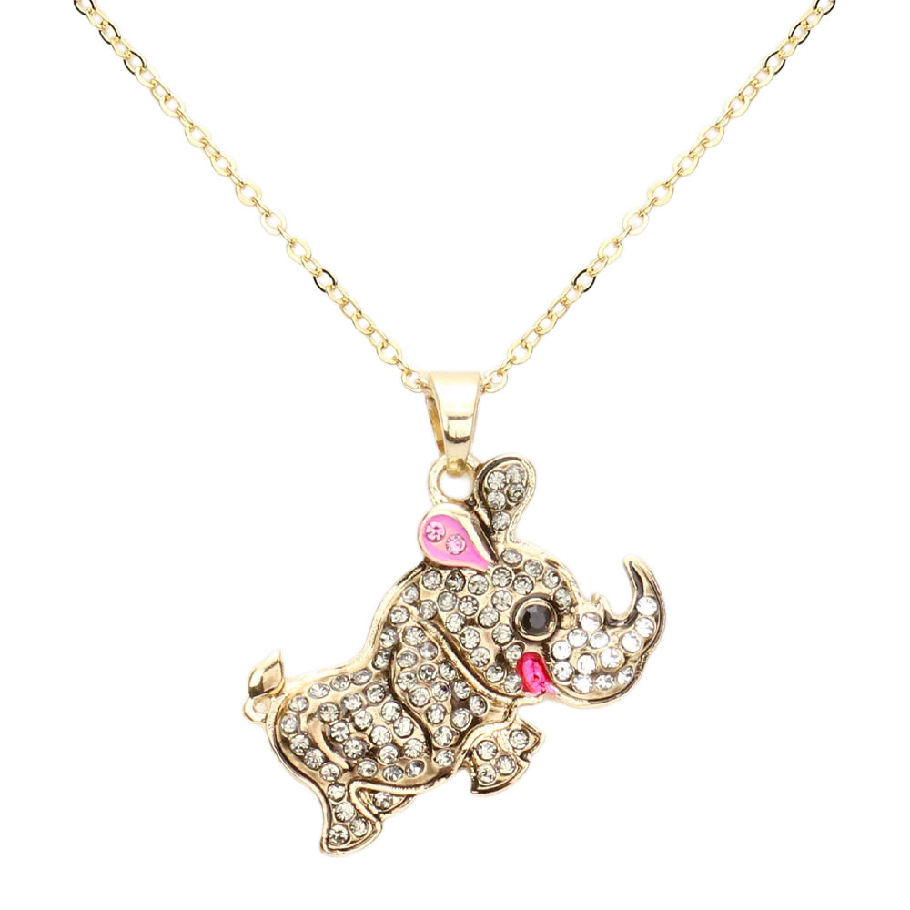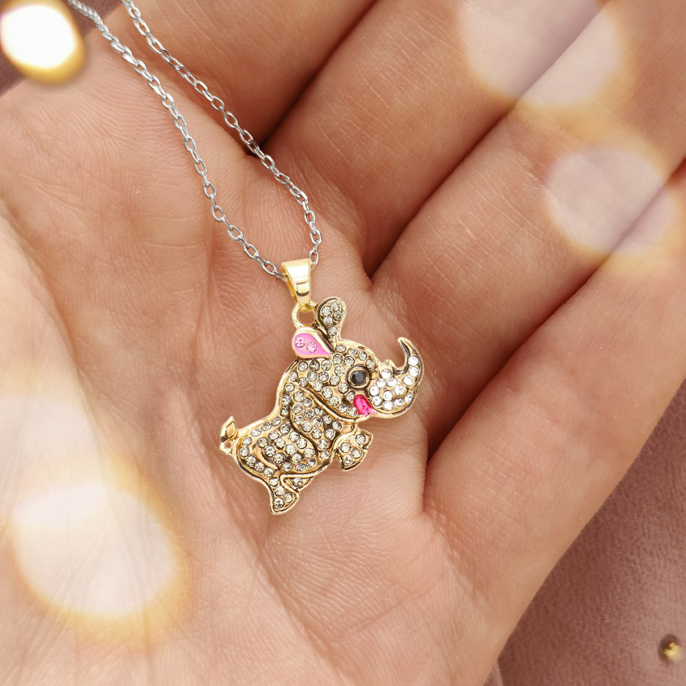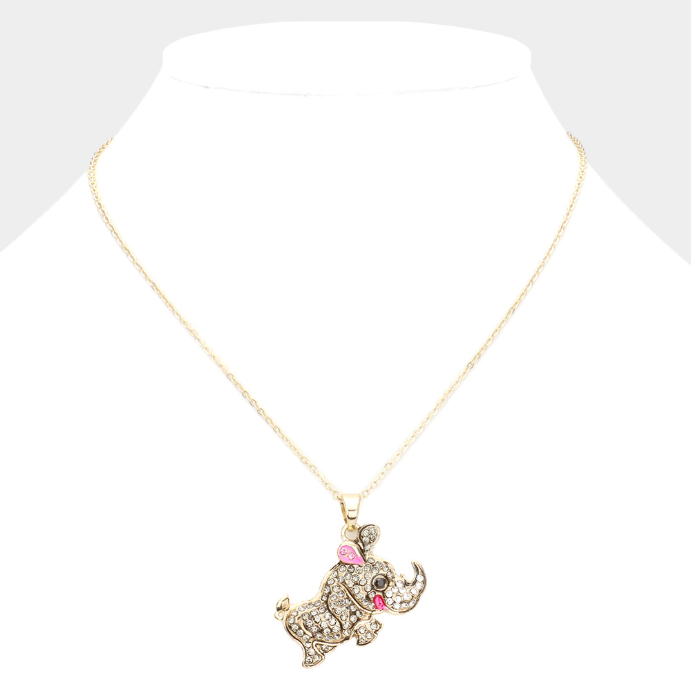 Rhinestone Embellished Rhinoceros Pendant Necklace