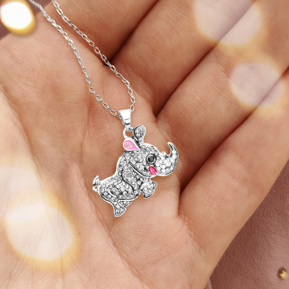 Rhinestone Embellished Rhinoceros Pendant Necklace