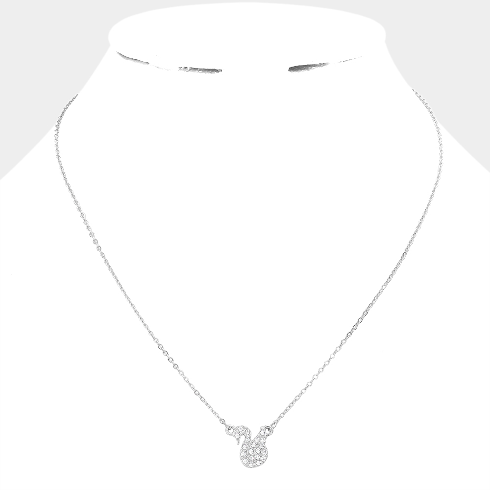 Rhinestone Embellished Swan Pendant Necklace