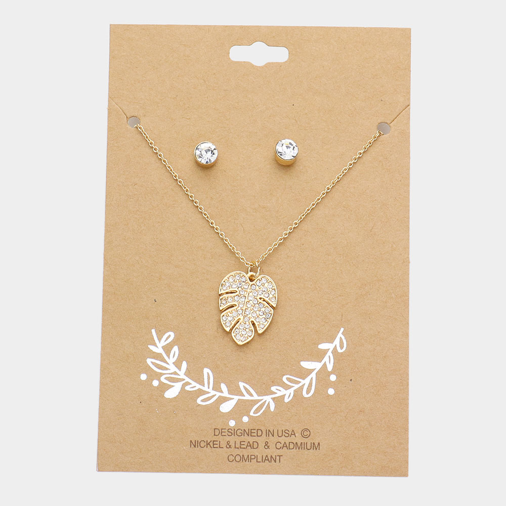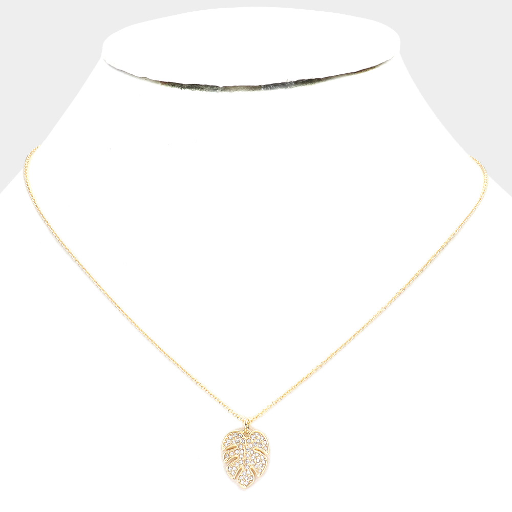 Rhinestone Embellished Tropical Leaf Pendant Necklace