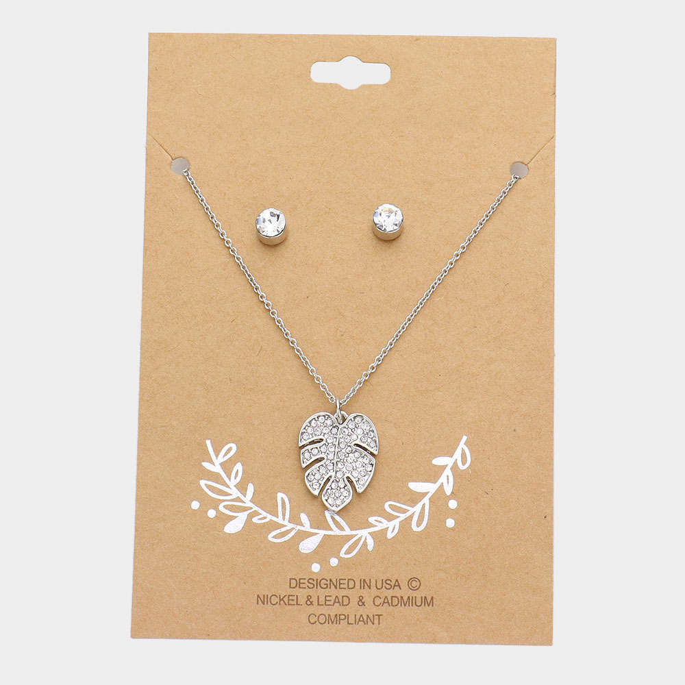 Rhinestone Embellished Tropical Leaf Pendant Necklace