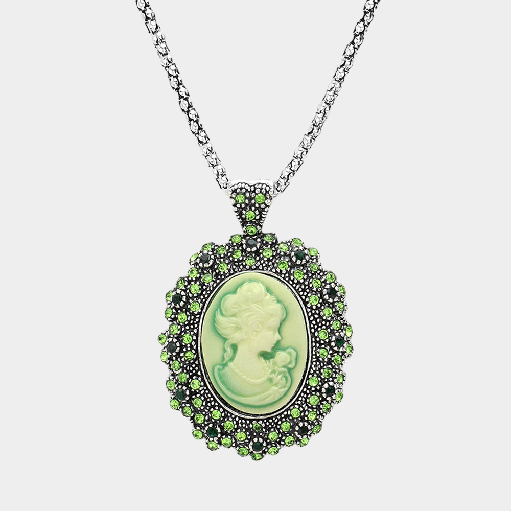 Rhinestone Paved Cameo Pointed Pendant Necklace