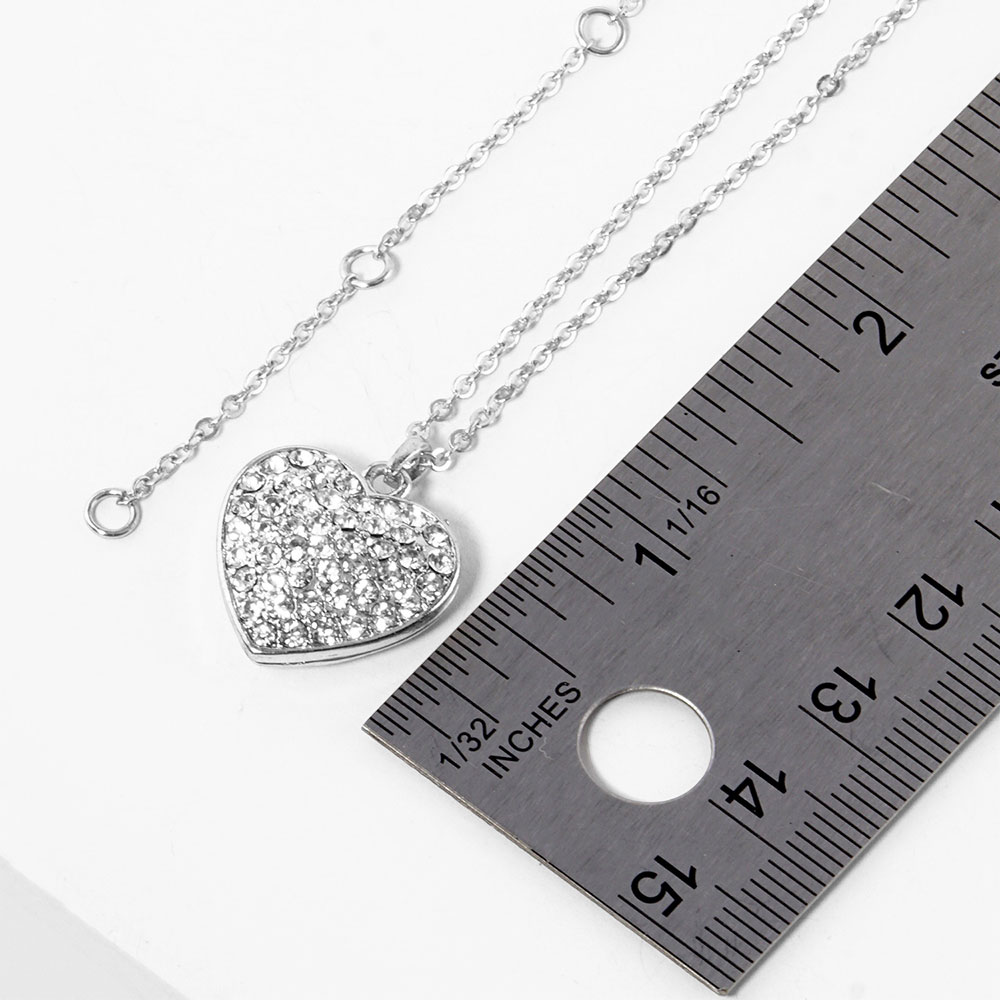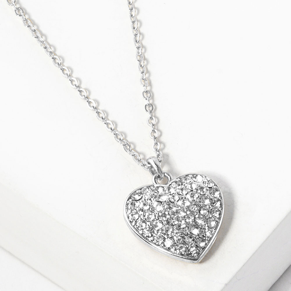 Details • Necklace Size : 15.5" + 2" L • Pendant Size : 0.75" X 0.8" • Charming heart pendant necklace featuring a sparkling rhinestone design on a delicate chain. A timeless accessory that adds subtle shine to everyday outfits and special occasions. Perfect as a gift or personal keepsake. • Lead and Nickel Compliant