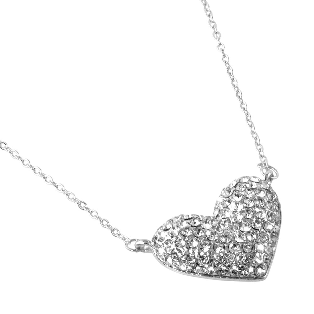 Details • Necklace Size : 15.5" + 2" L • Pendant Size : 1" X 0.75" • Elegant heart pendant necklace featuring a shimmering pave crystal design. A delicate chain holds the sparkling heart centerpiece, offering a timeless accessory perfect for everyday wear or special occasions. Ideal gift option for loved ones. • Lead and Nickel Compliant