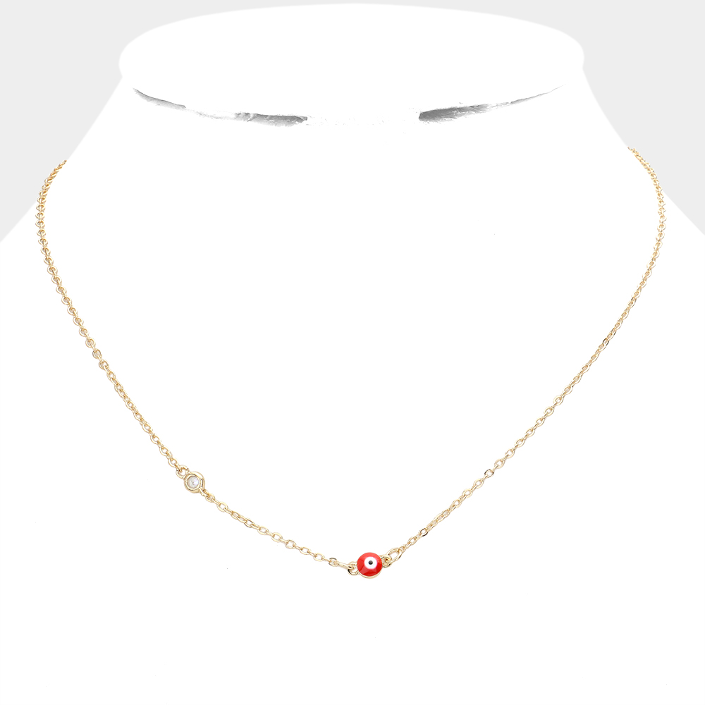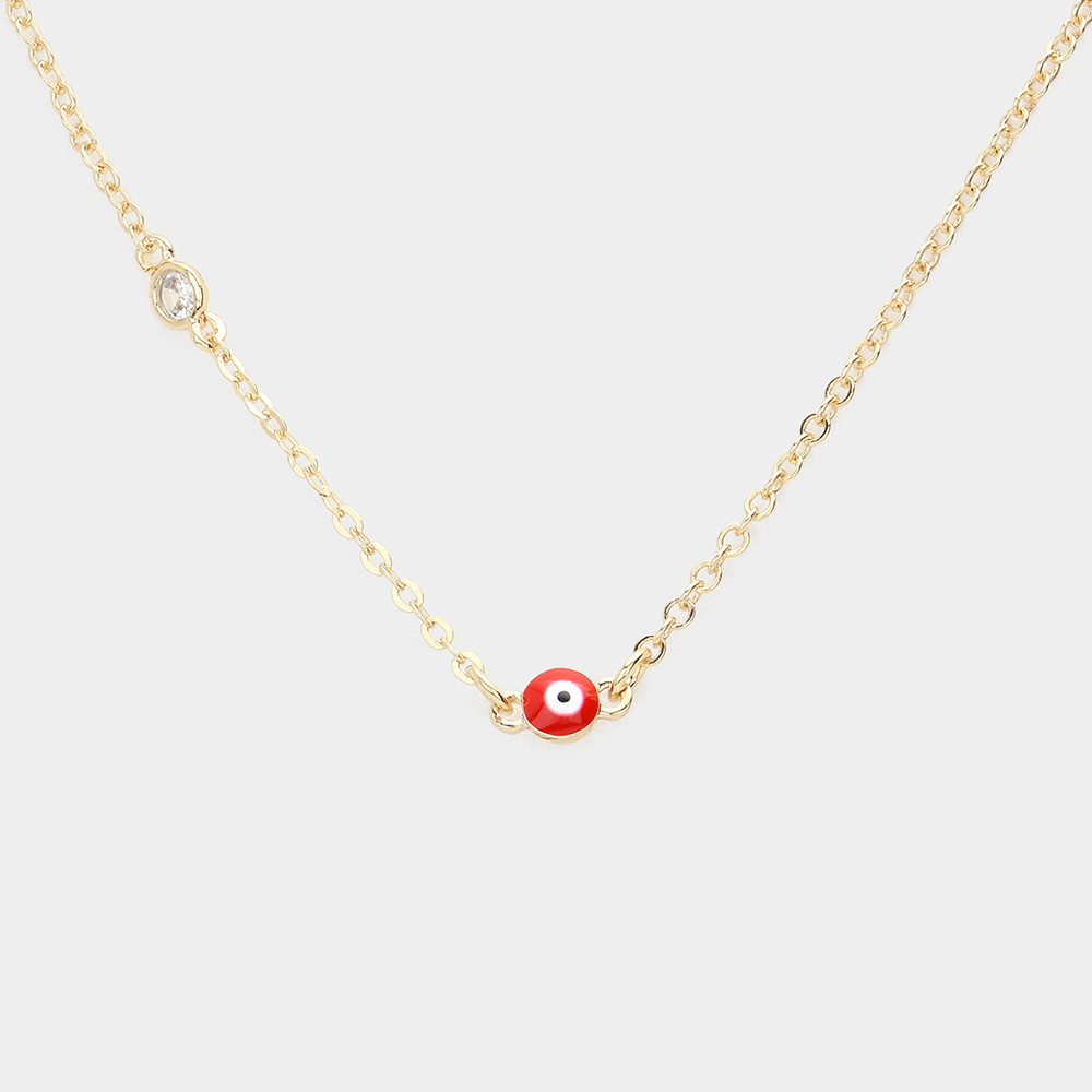 Round Stone Pointed Evil Eye Pendant Necklace