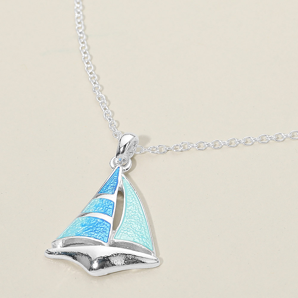 • Sailboat pendant necklace inspired by ocean adventures and coastal living. This charming design features a classic sailboat shape that adds a relaxed yet stylish touch to everyday looks. Perfect for beach boutiques, nautical themed gift shops, resort stores, and travel collections, appealing to customers who love sailing, seaside escapes, and ocean inspired jewelry.