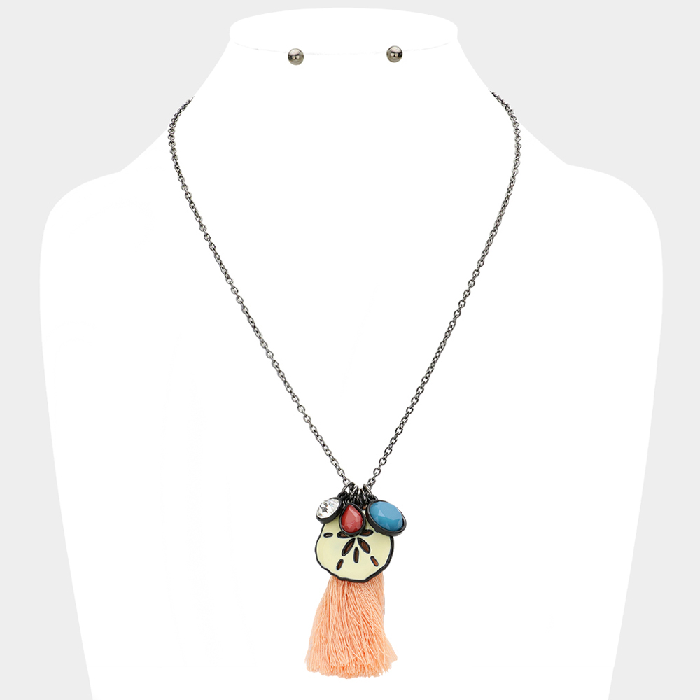 Sea Glass Starfish Metal Seashell Sand Dollar Sea Turtle Embellished Necklace