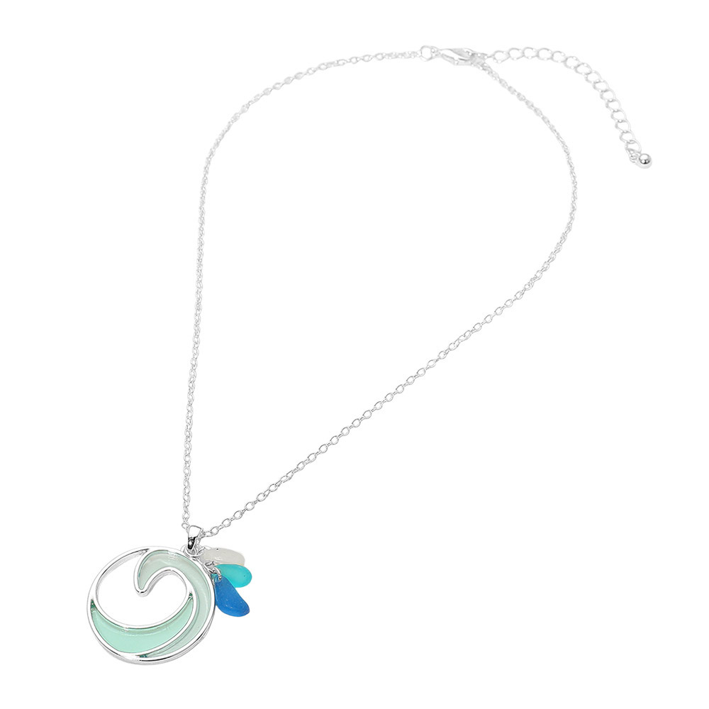 Sea Glass Abstract Ocean Wave Pendant Necklace