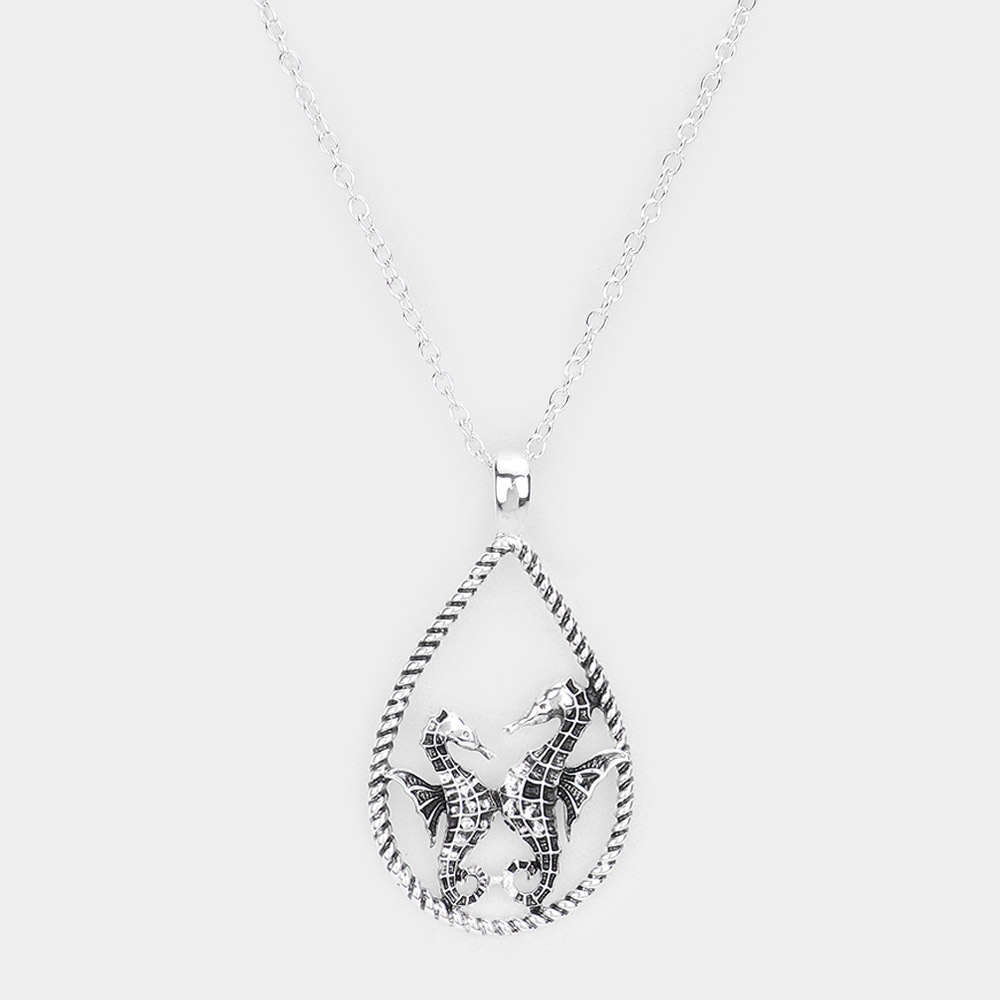 Rhinestone Embellished Metal Treble Clef Pendant Necklace