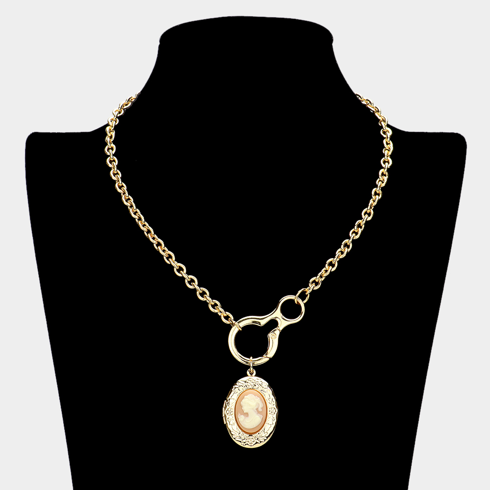 SECRET BOX_Sterling Silver Dipped Cameo Locket Pendant Necklace