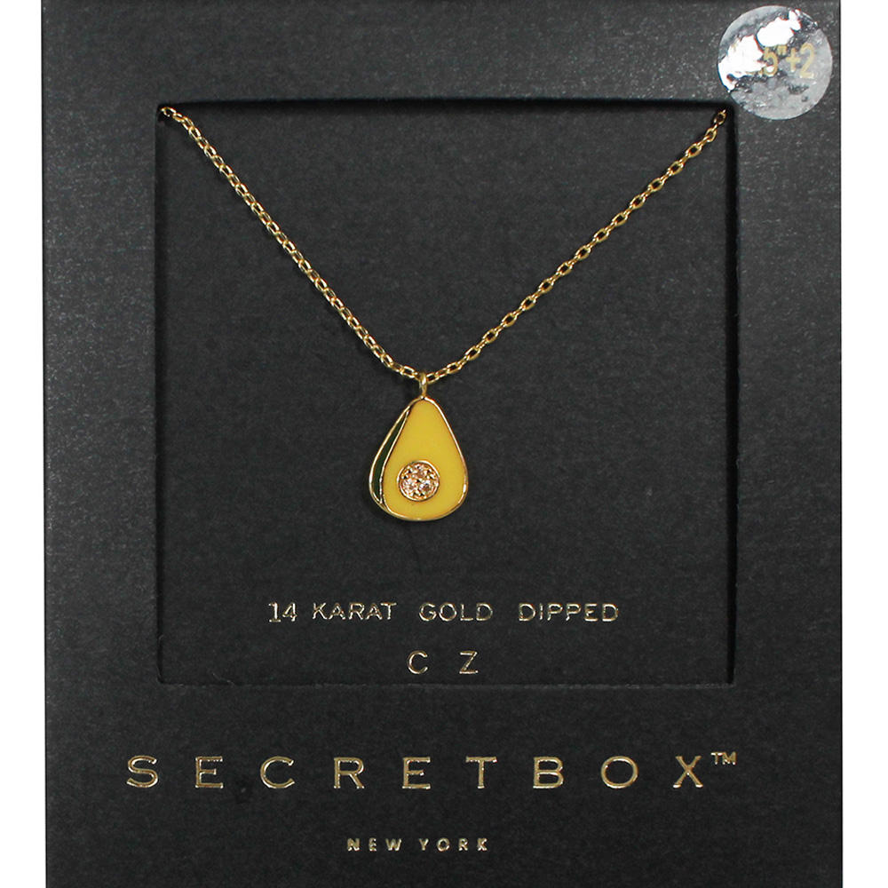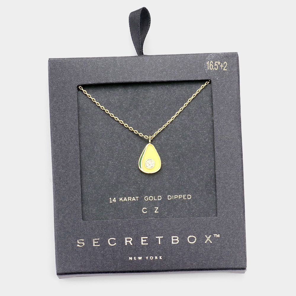 SECRET BOX_14K Gold Dipped CZ Embellished Enamel Avocado Pendant Necklace