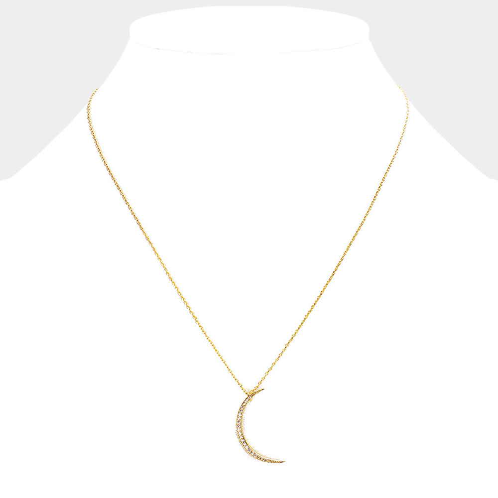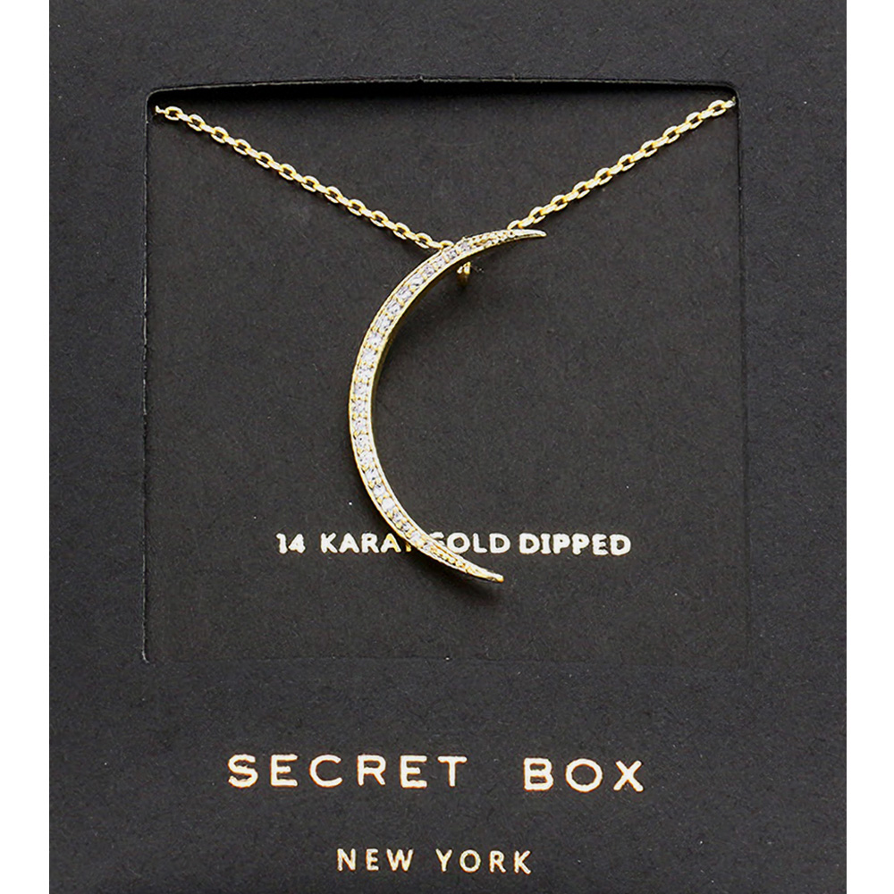 Secret Box _ 14K Gold Dipped CZ Moon Pendant Necklace
