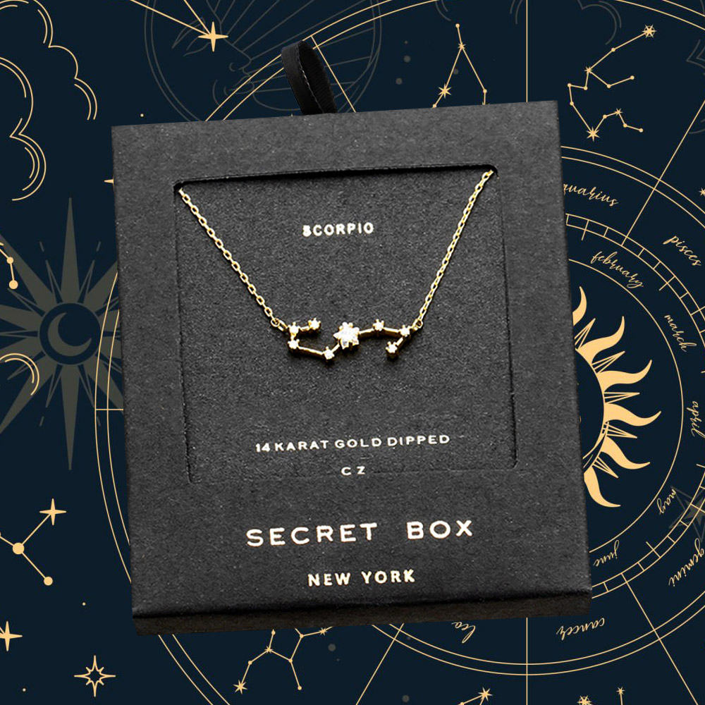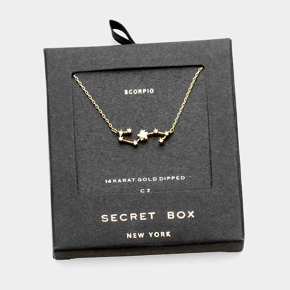 SECRET BOX_14K Gold Dipped CZ Scorpio Zodiac Sign Pendant Necklace