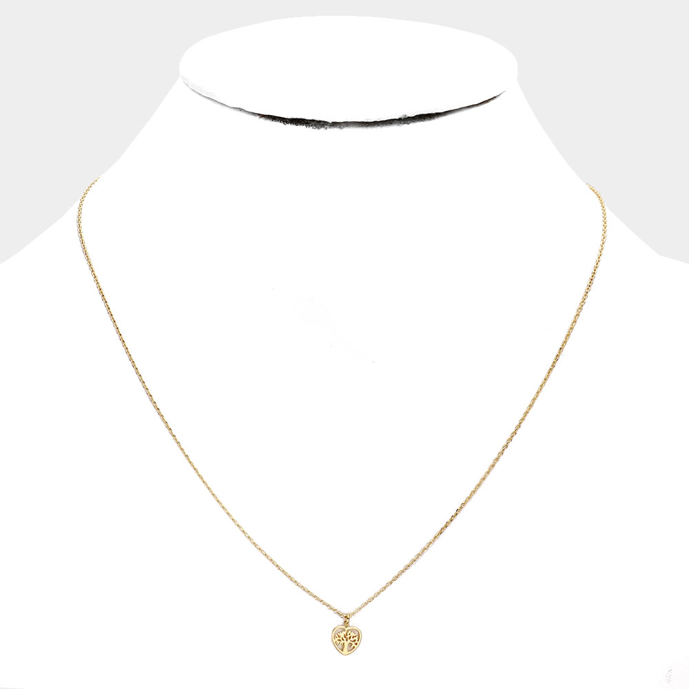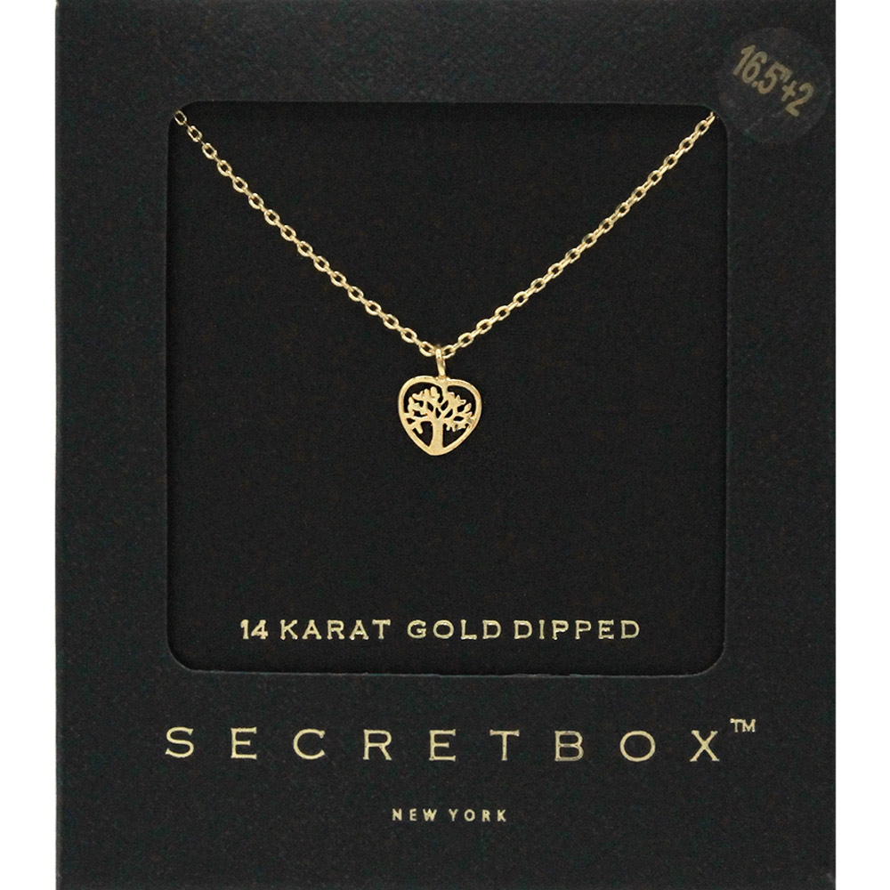 SECRET BOX_14K Gold Dipped Tree of Life Metal Heart Pendant Necklace