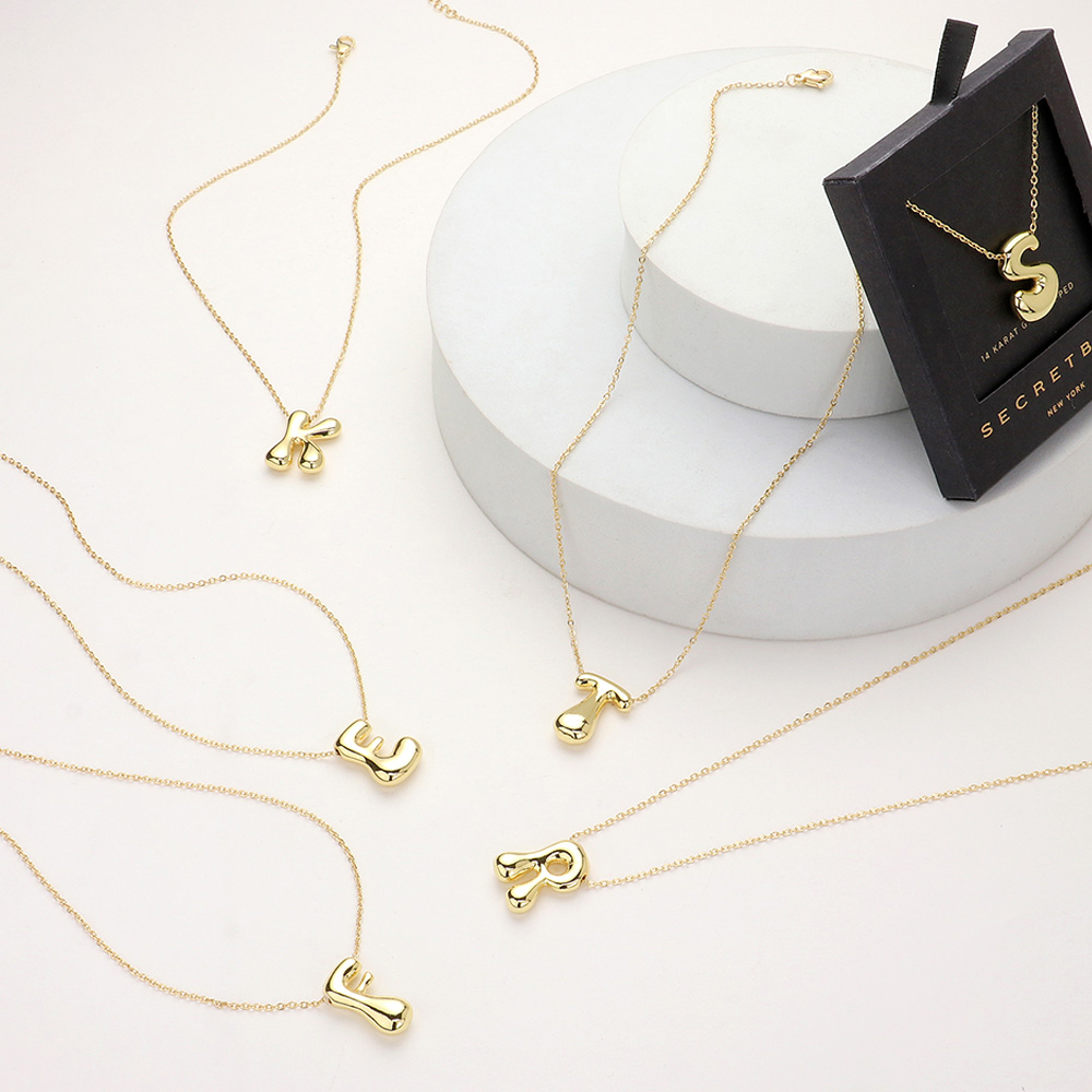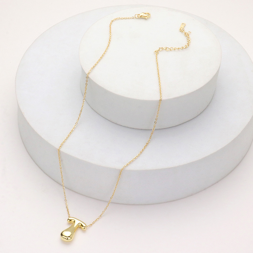 Details • Necklace Size : 15.5" + 2.25" L • Pendant Size : 0.75" L • Stylish pendant necklace featuring a bold, modern initial "A" design. Perfect for personalizing your look or gifting to someone special, adding a touch of elegance to any outfit. • Gold Dipped