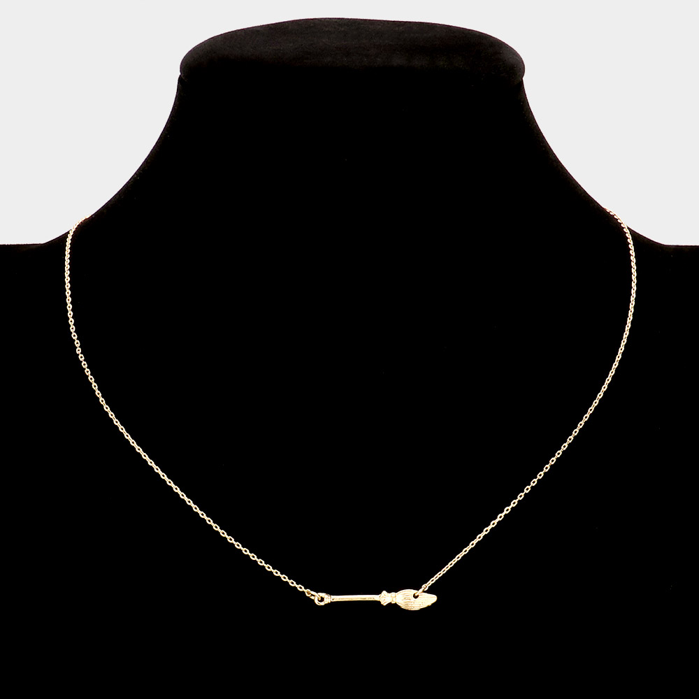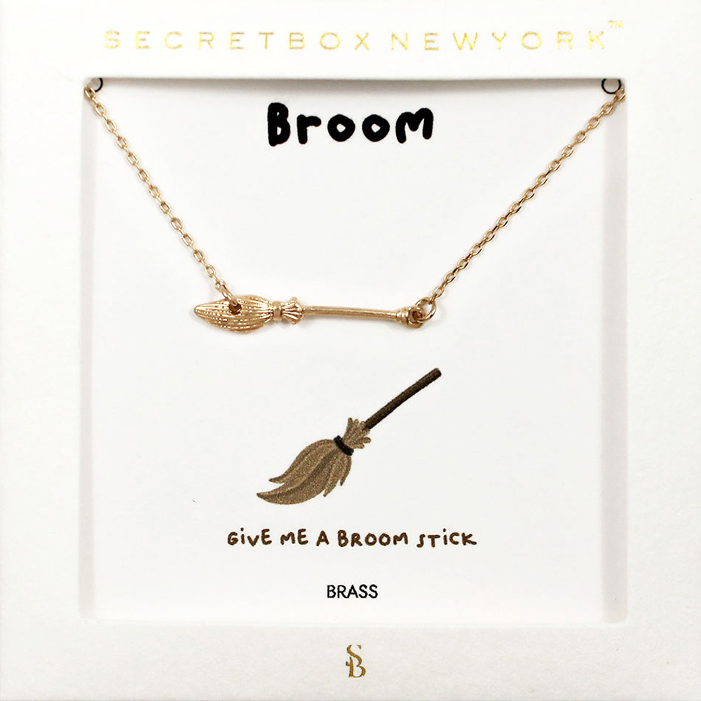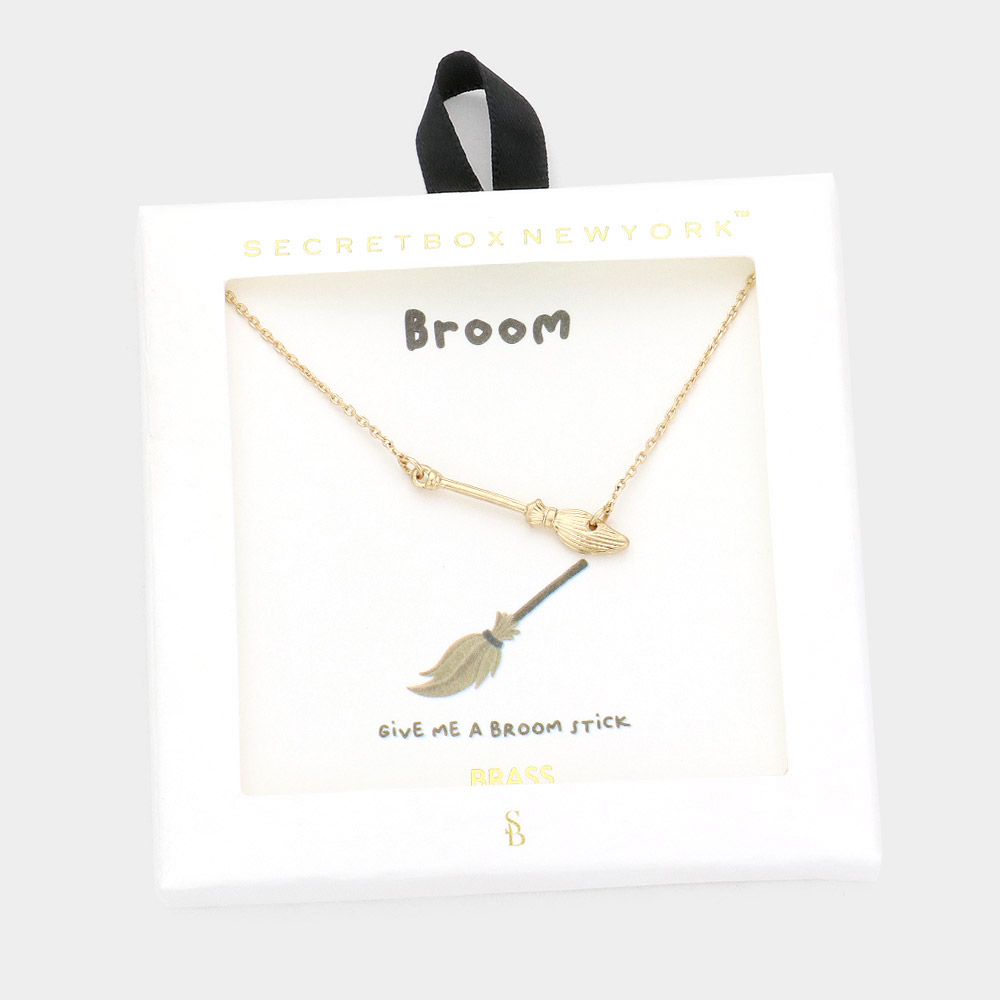 SECRET BOX_Brass Metal Broom Pendant Necklace