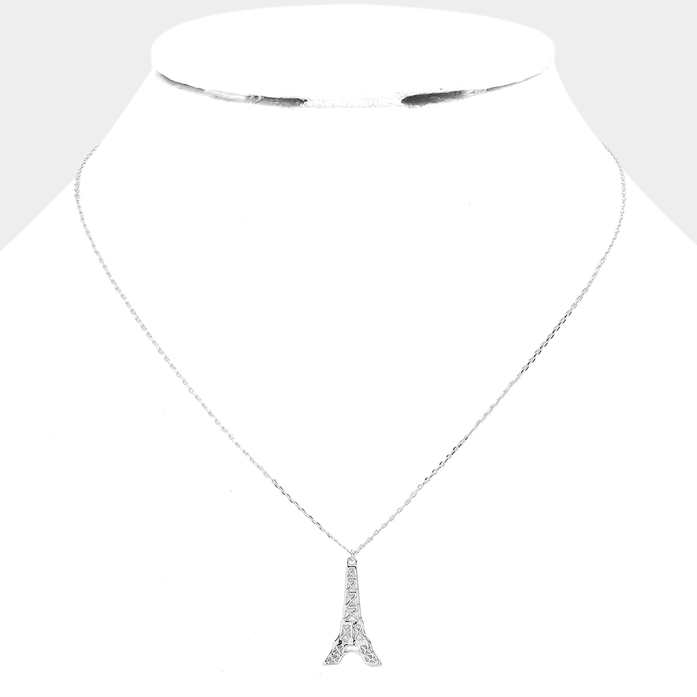 SECRET BOX_Brass Metal Eiffel Tower Pendant Necklace