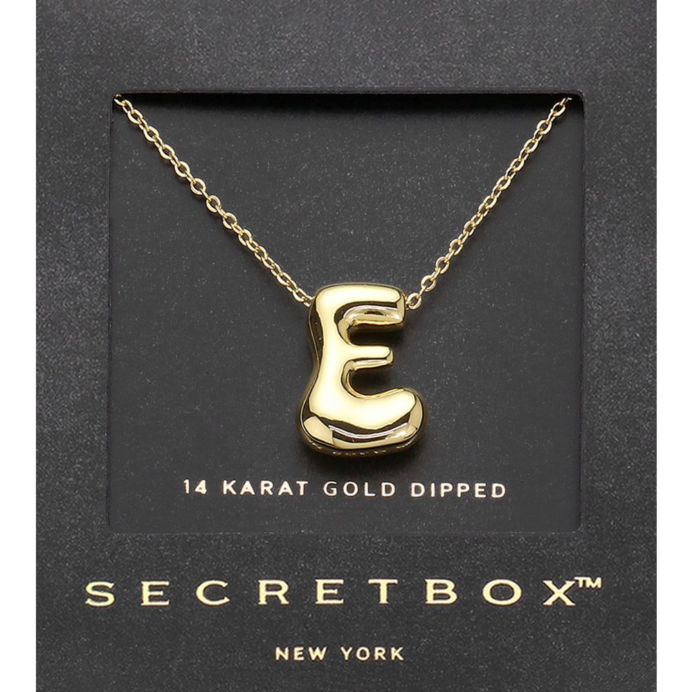 Details • Necklace Size : 15.5" + 2.25" L • Pendant Size : 0.75" L • Stylish pendant necklace featuring a bold, modern initial "E" design. Perfect for personalizing your look or gifting to someone special, adding a touch of elegance to any outfit. • Gold Dipped