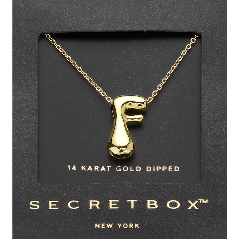 Details • Necklace Size : 15.5" + 2.25" L • Pendant Size : 0.75" L • Stylish pendant necklace featuring a bold, modern initial "F" design. Perfect for personalizing your look or gifting to someone special, adding a touch of elegance to any outfit. • Gold Dipped