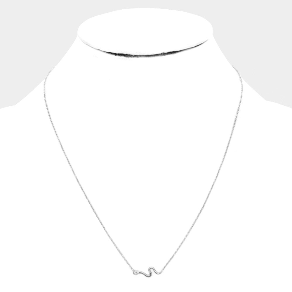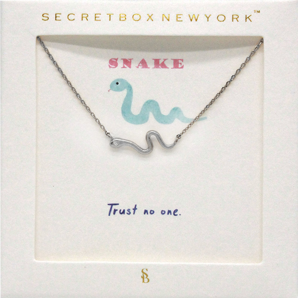 SECRET BOX_Rhinestone Embellished Metal Snake Pendant Necklace
