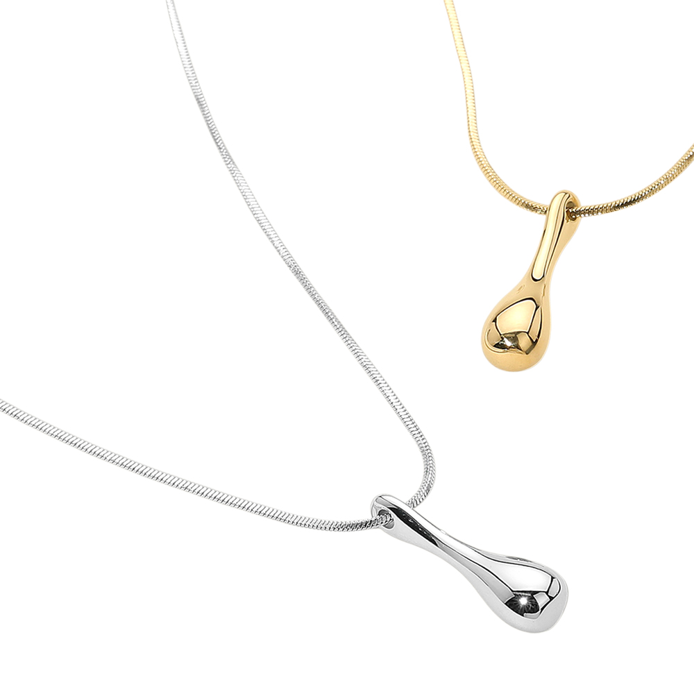 SECRET BOX_Stainless Steel Abstract Long Teardrop Pendant Necklace