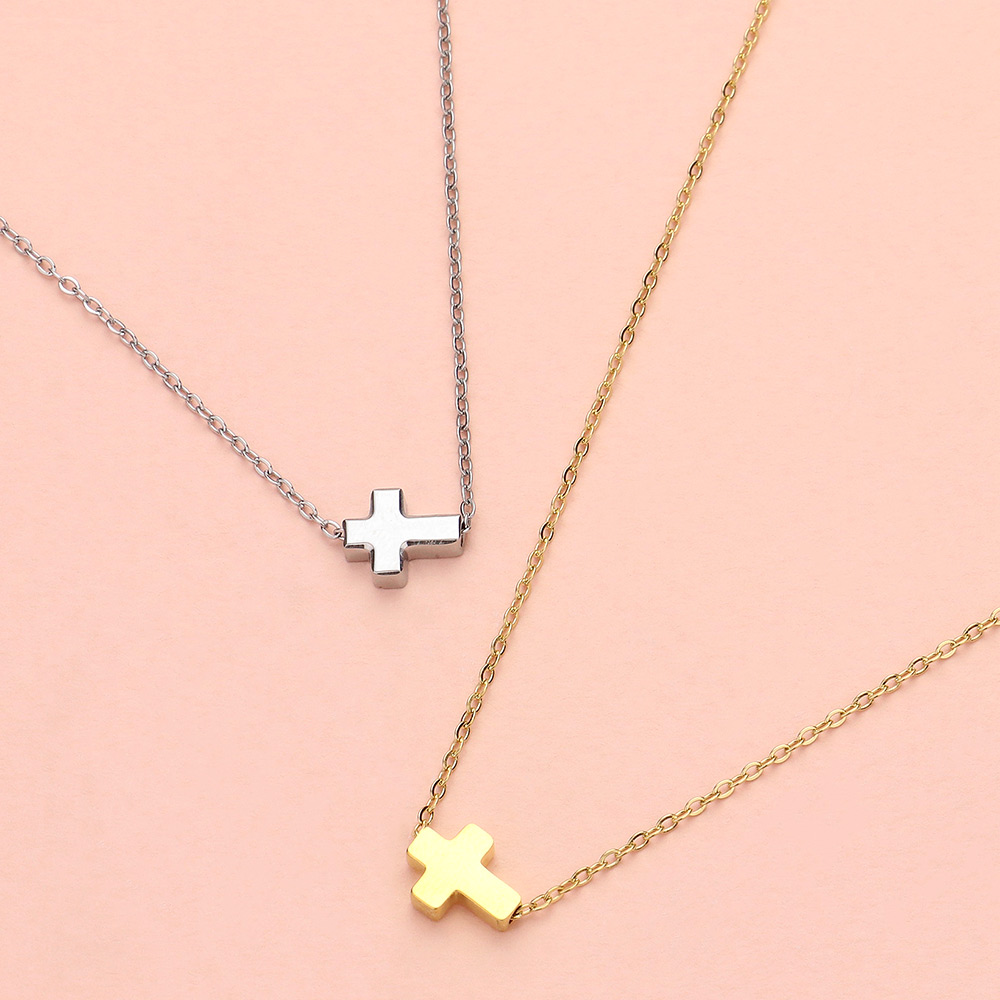 SECRET BOX_Stainless Steel Mini Cross Pendant Necklace
